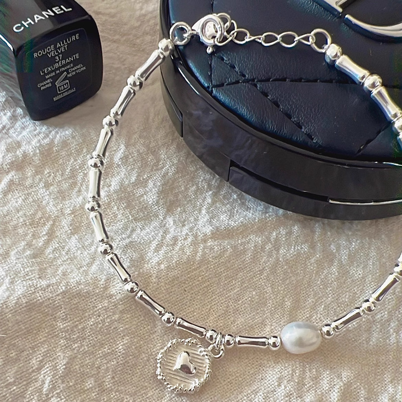 925纯银竹节爱心珍珠手链女韩版ins小众冷淡风时尚个性百搭高级感