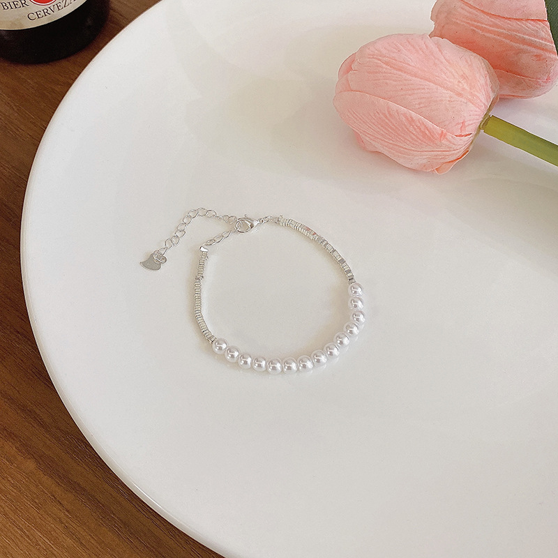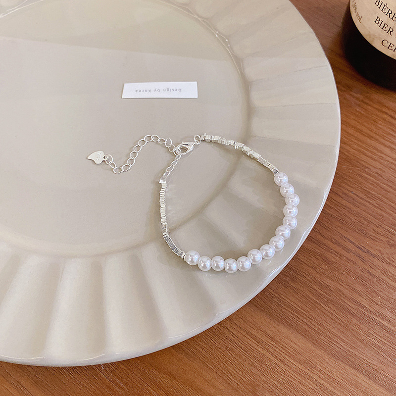 珍珠碎银手链女ins风百搭小众高级感串珠手环复古简约闺蜜首饰品