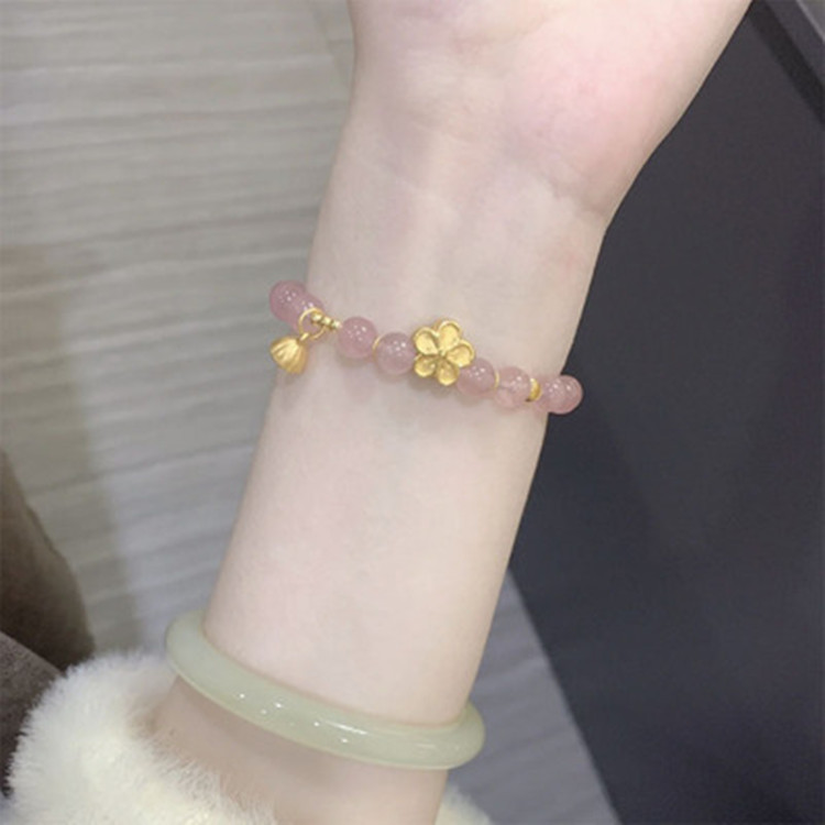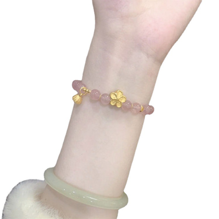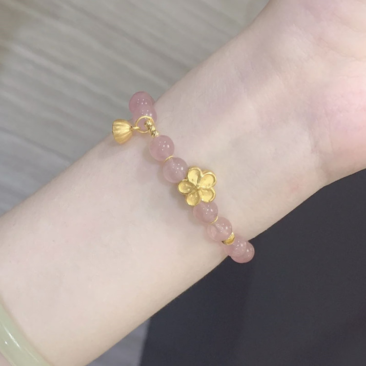 天然粉水晶桃花莲蓬手链女温柔百搭显白高级感礼物手串珠
