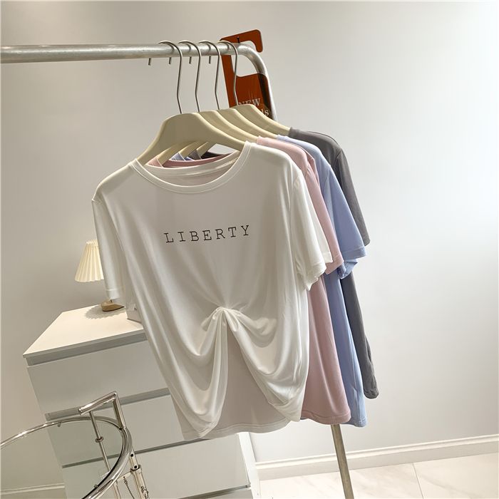 莫代尔字母印花垂感短袖t恤女!夏季韩版新款宽松学生百搭上衣潮