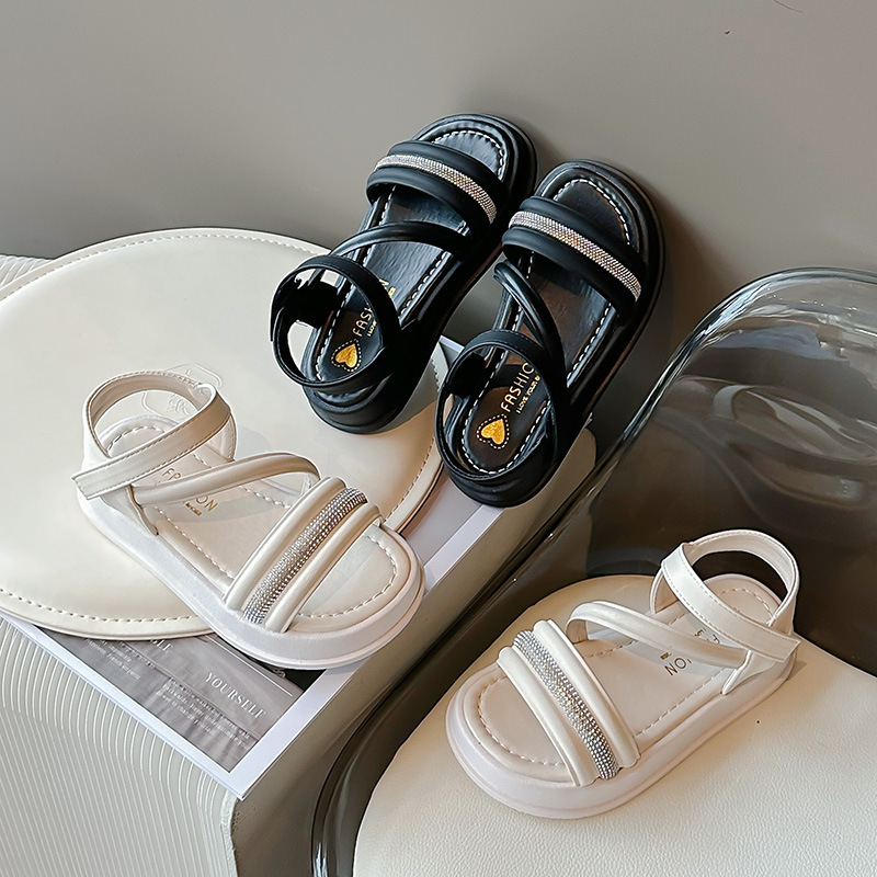 休闲中大童软底2025夏季防滑鞋新款露趾女童女童凉鞋公主沙滩单鞋