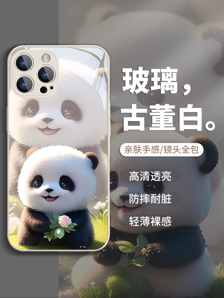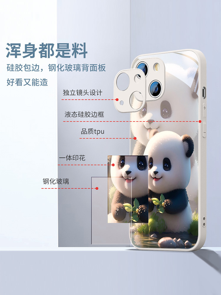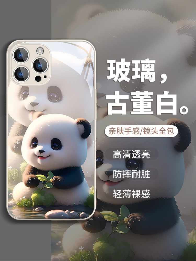 熊猫适用苹果14手机壳iPhone13新款12高级感15pro可爱8卡通xs创意