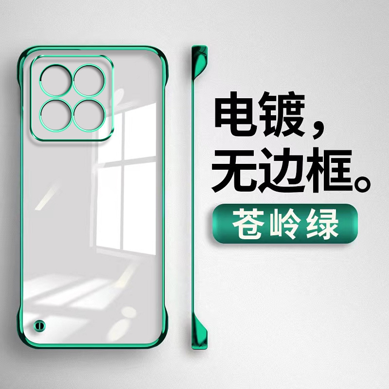 适用小米14手机壳新款14pro超薄透明无边框电镀半包防摔硬壳简约