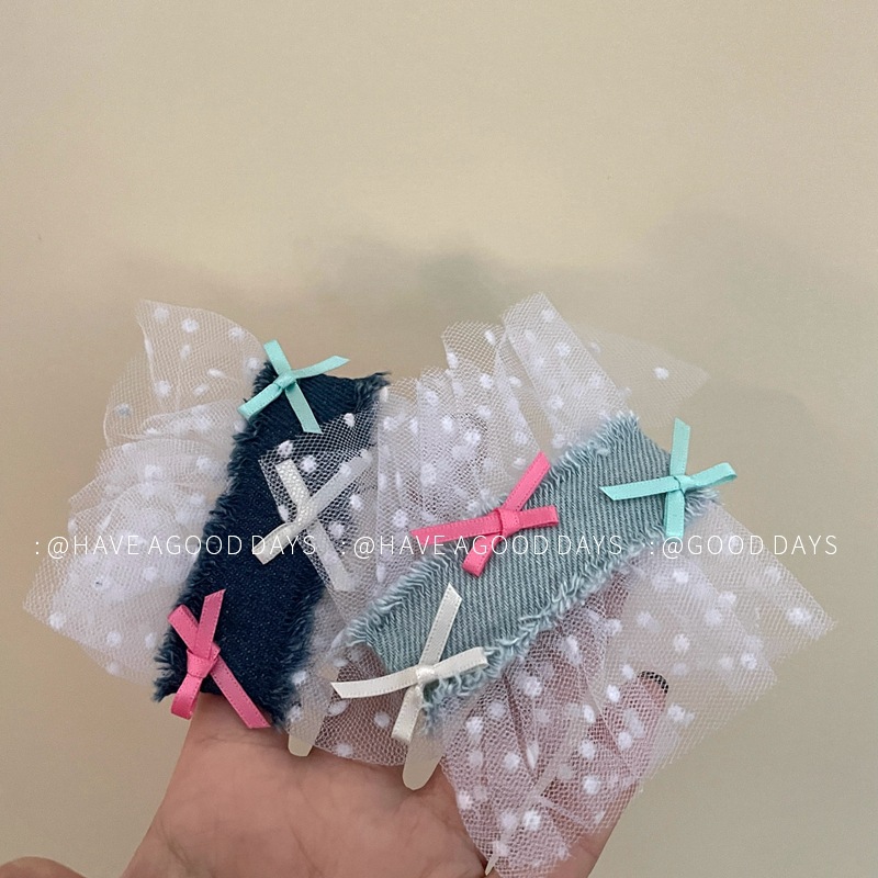 甜美网纱牛仔发夹蝴蝶结韩版边夹刘海夹秋冬新款发饰头饰小众气质