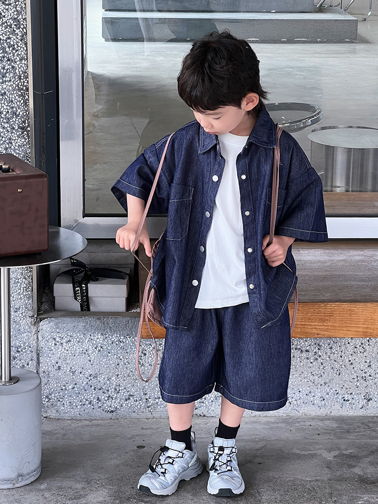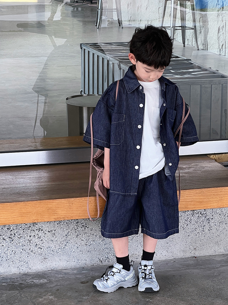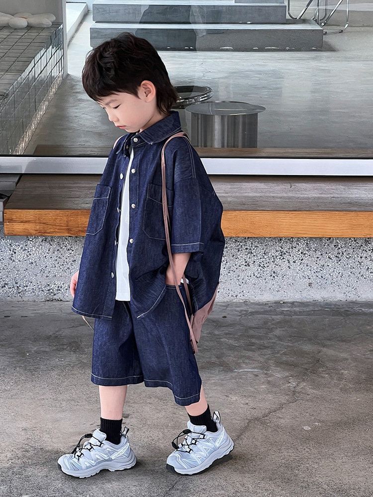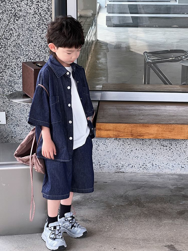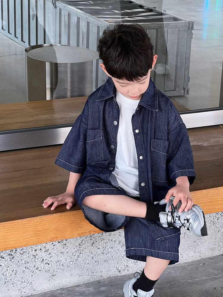 儿童夏季薄款童装牛仔套装中大童休闲洋气两件套男童时尚短袖短裤