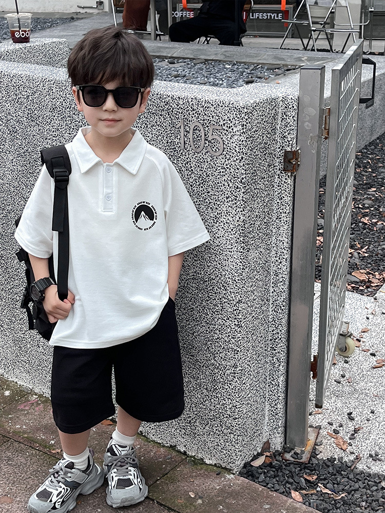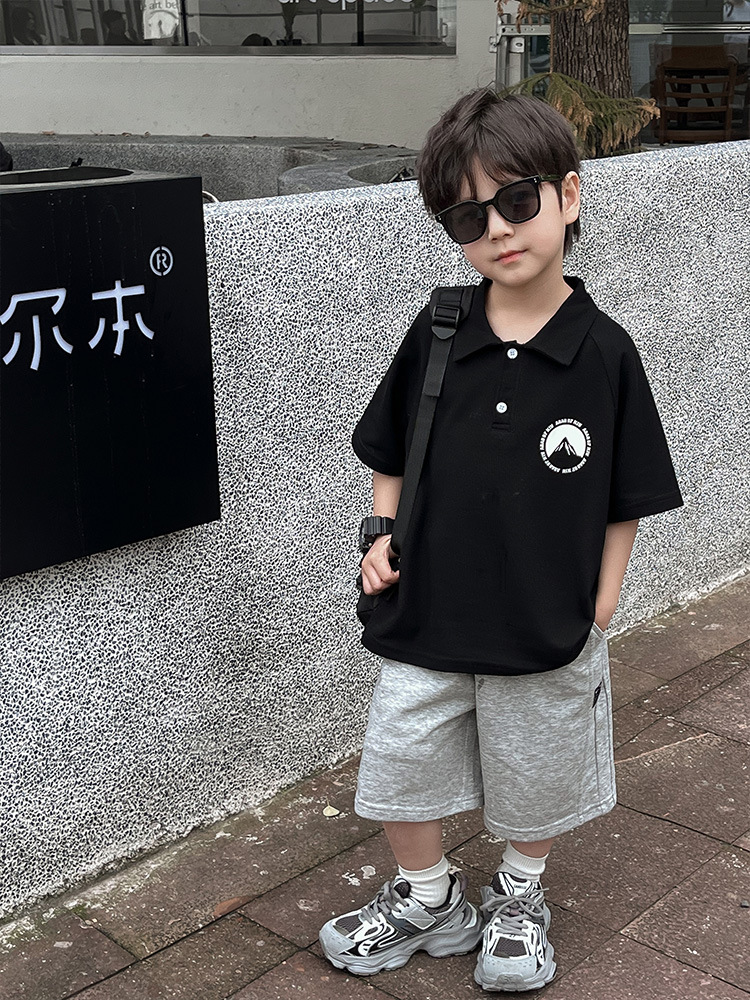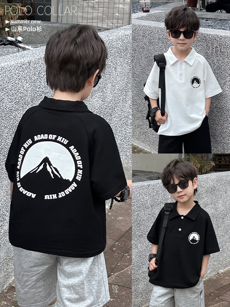 童酷湖州织里童装男童夏装小山印花儿童短袖POLO衫