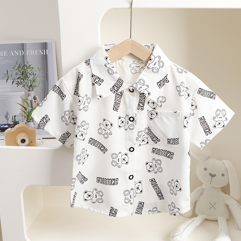 儿童衬衫夏款短袖男童上衣宝宝外褂童装港风休闲潮流