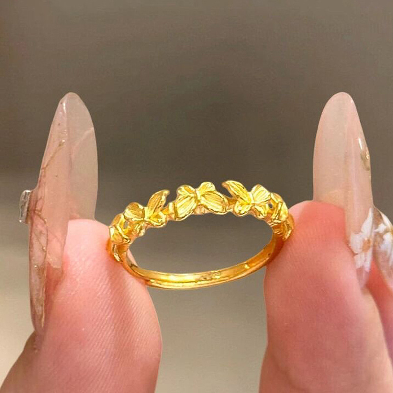 小红书爆款碎金蝴蝶戒指女古法爆闪碎冰冰花纹小蝴蝶指环