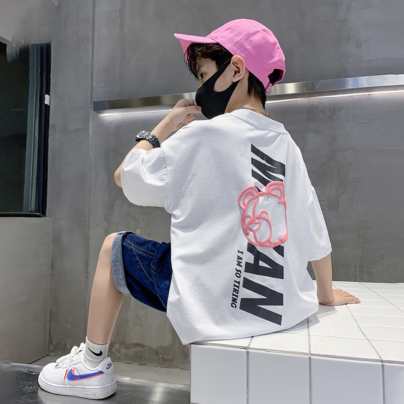 童装男童夏装短袖T恤新款宽松卡通印花儿童男孩夏季潮服大童帅气