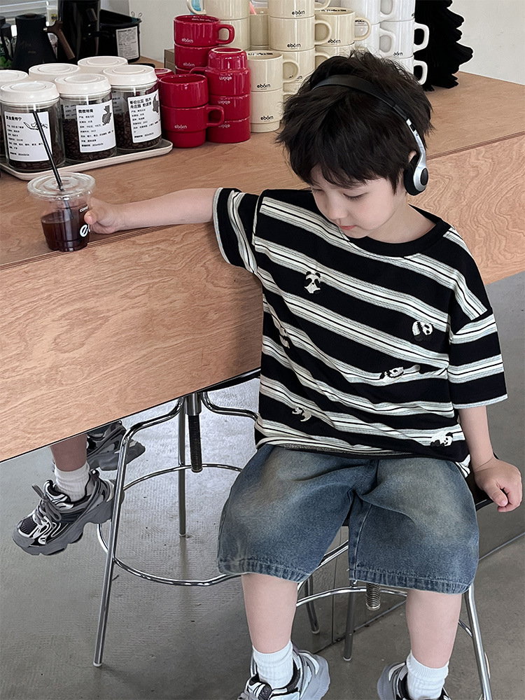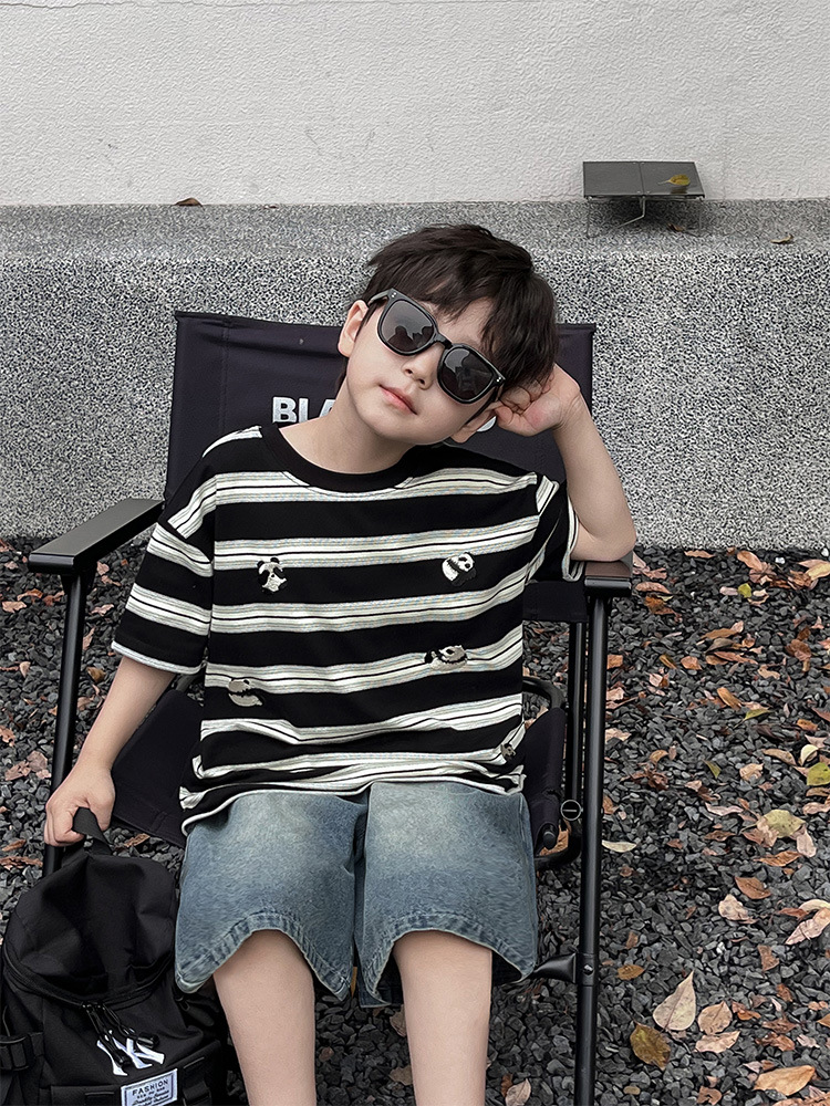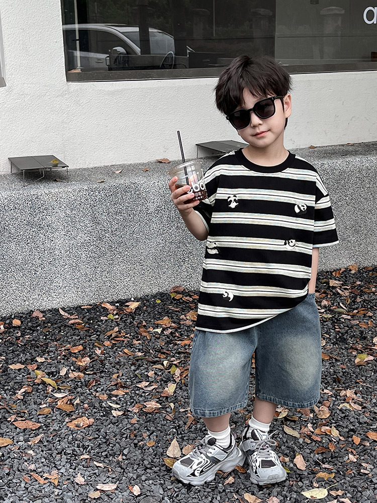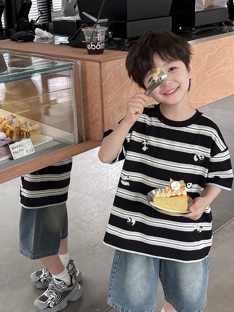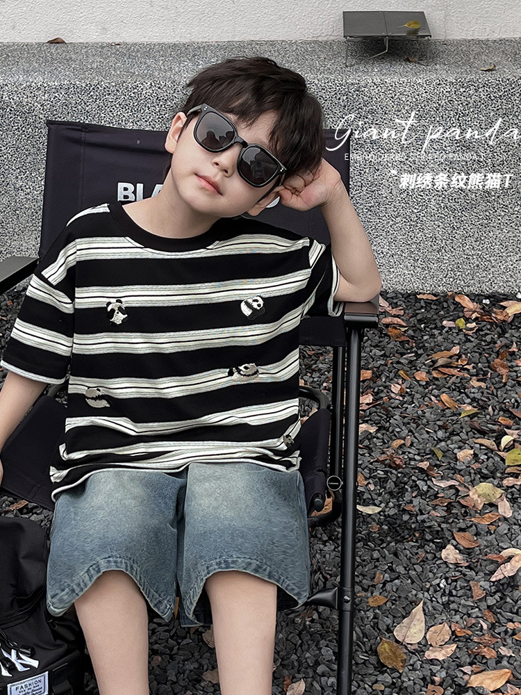 童酷湖州织里童装儿童夏装新品宝宝T恤可爱刺绣熊猫男童短袖