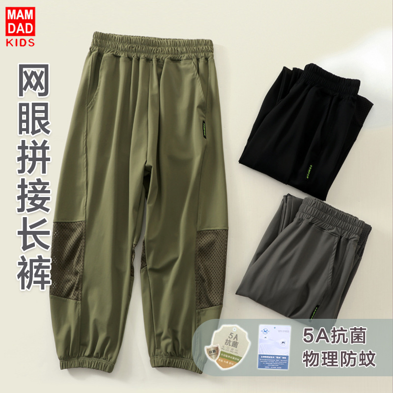 儿童夏天冰丝裤网眼透气男童女童长裤子夏天薄款运动休闲裤防蚊裤
