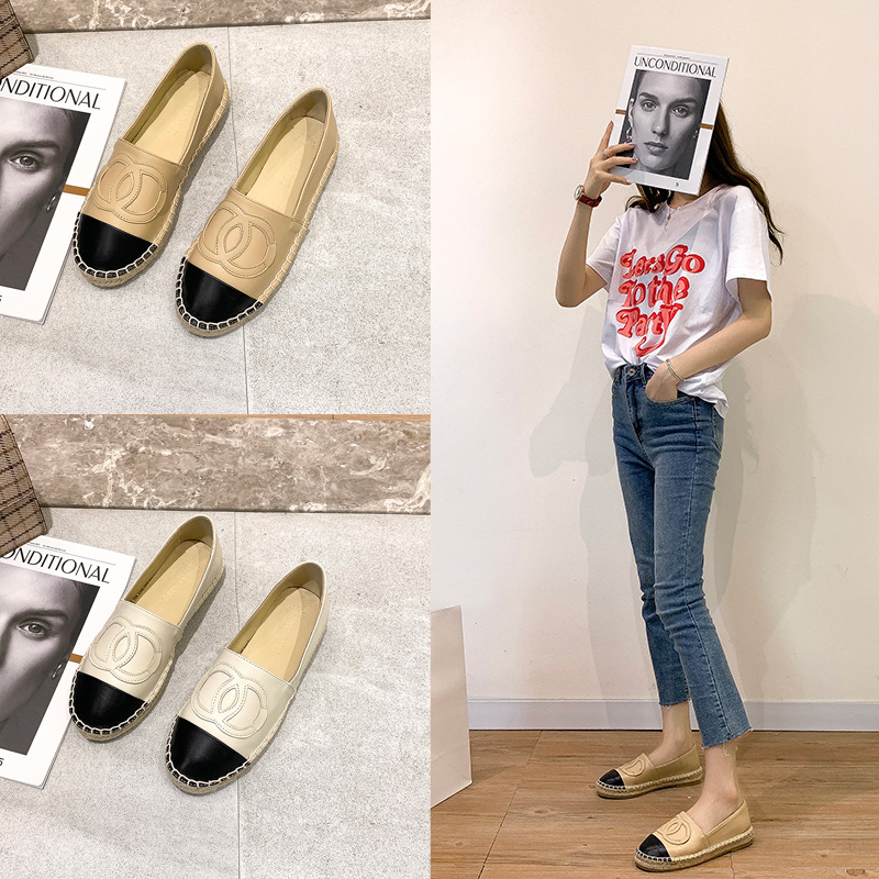 头层羊皮小香风渔夫鞋春季新款圆头浅口平底单鞋女厚底乐福鞋