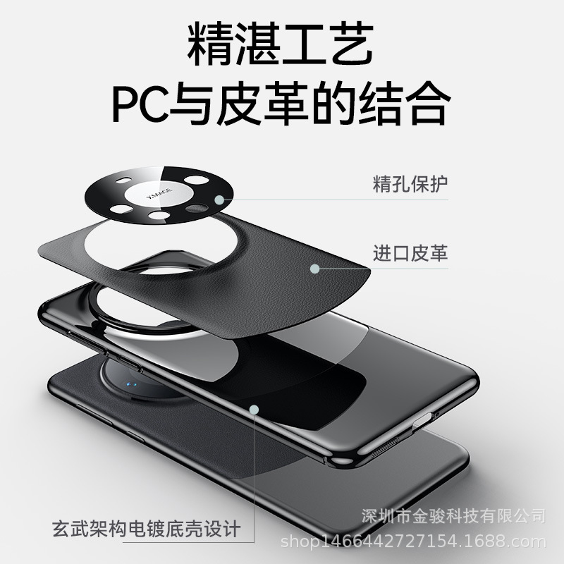 华为Mate60pro 手机壳电镀PC素皮硬适用mate50创意全包防摔保护套