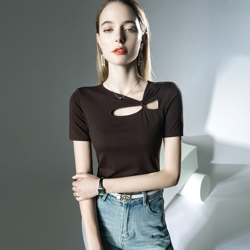 设计感短袖洋气夏季新款T恤镂空不规则上衣