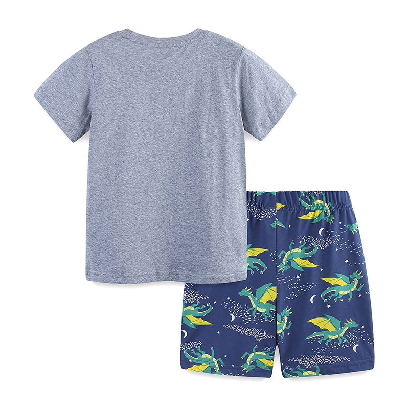 欧美童装夏季新款男童套装中小童圆领短裤两件套