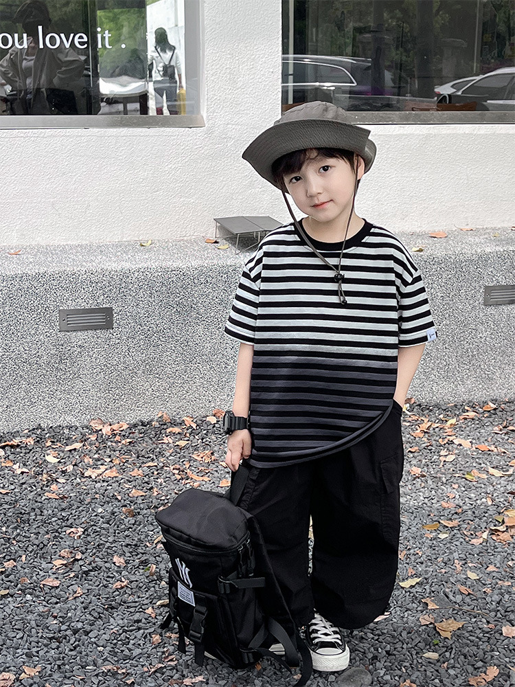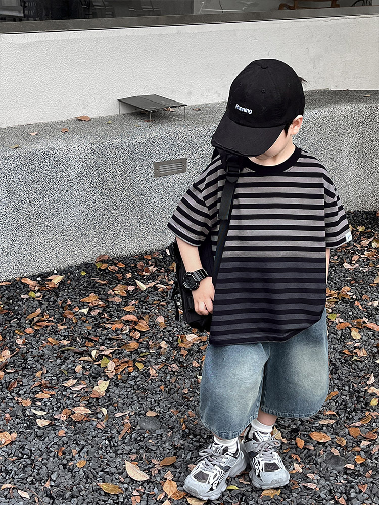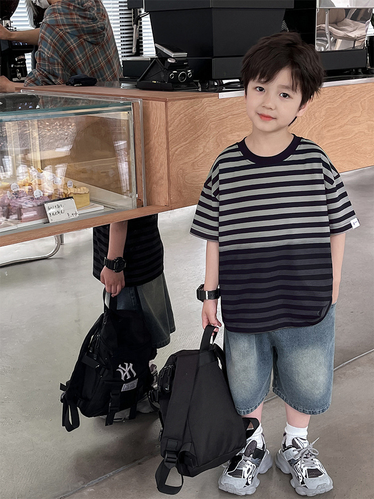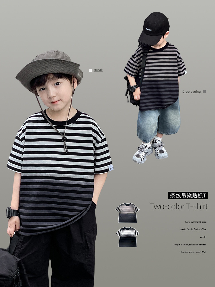 童酷湖州织里童装儿童夏装新品宝宝T恤韩版吊染条纹男童短袖