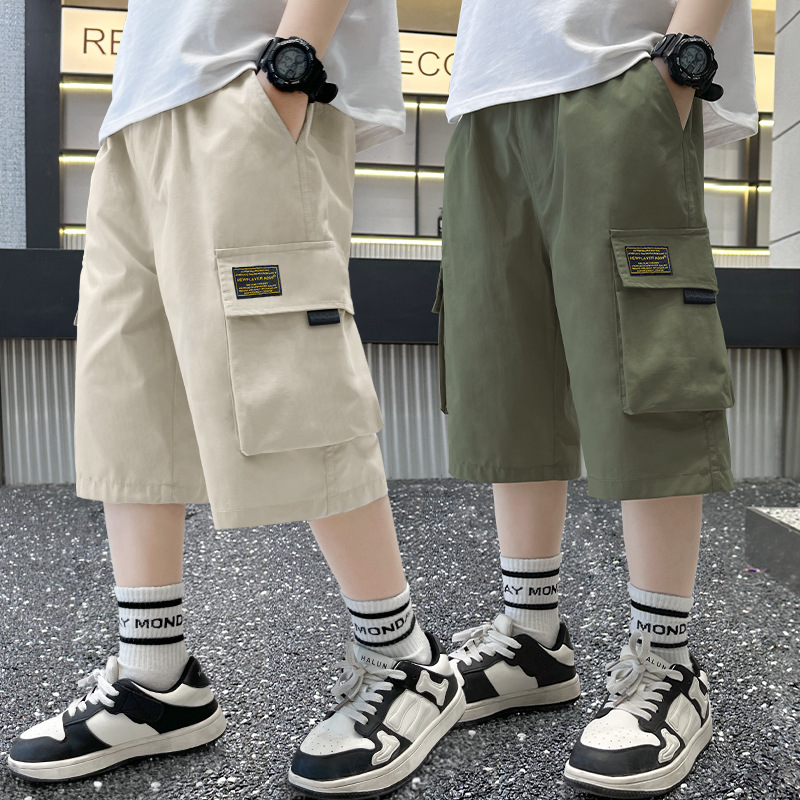 跨境专供男童工装裤童装年夏款休闲五分裤大童百搭潮纯棉童裤