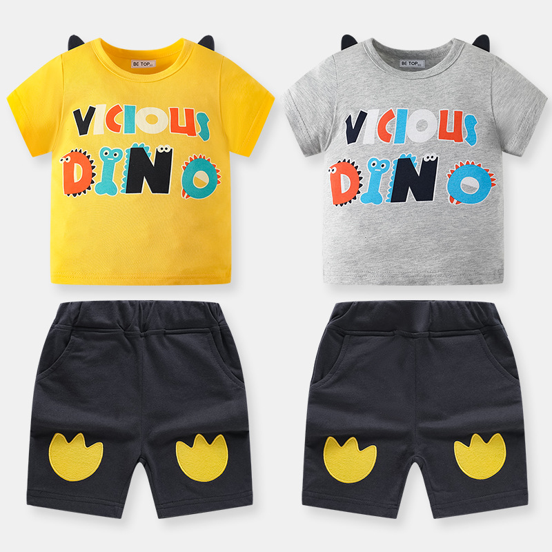 男童恐龙两件套夏装新款儿童休闲圆领男孩短袖短裤中小童韩版童装