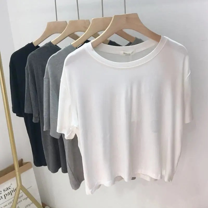 超手感莫代尔女夏短袖夏季韩版新款薄款软糯纯色上衣女潮