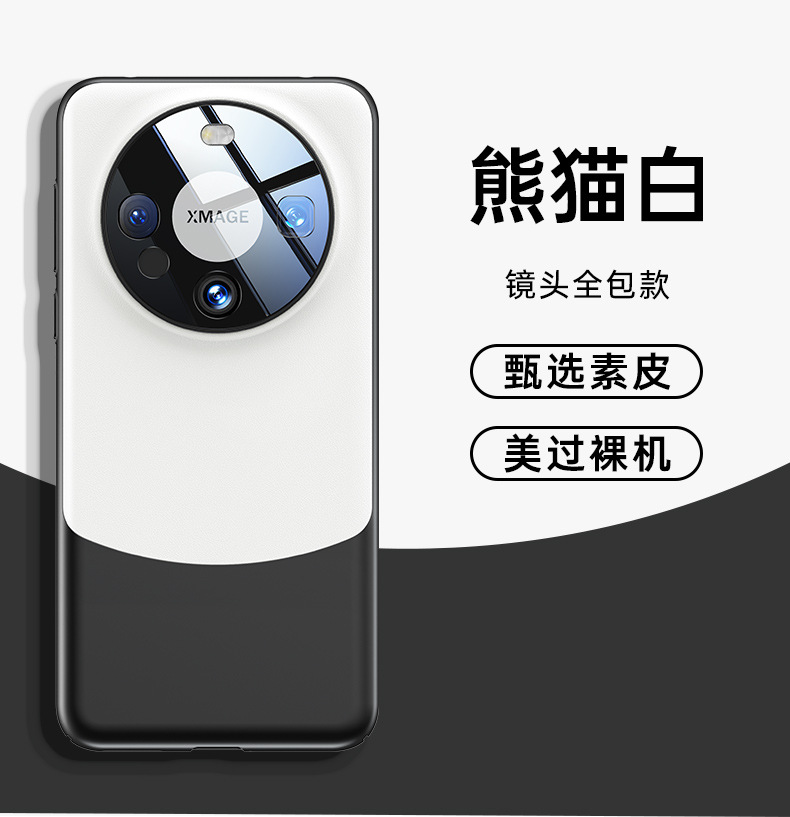 适用华为mate60手机壳熊猫配色新款带耳朵mate60pro素皮pro+全包