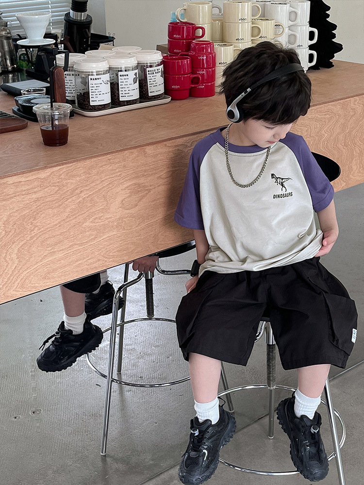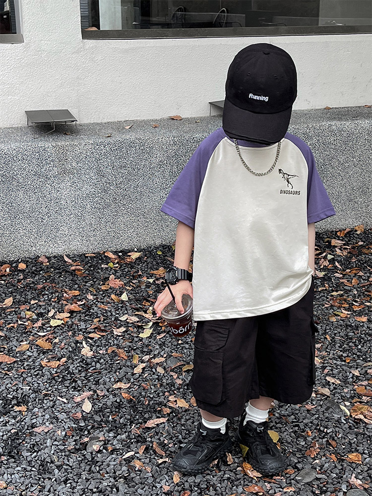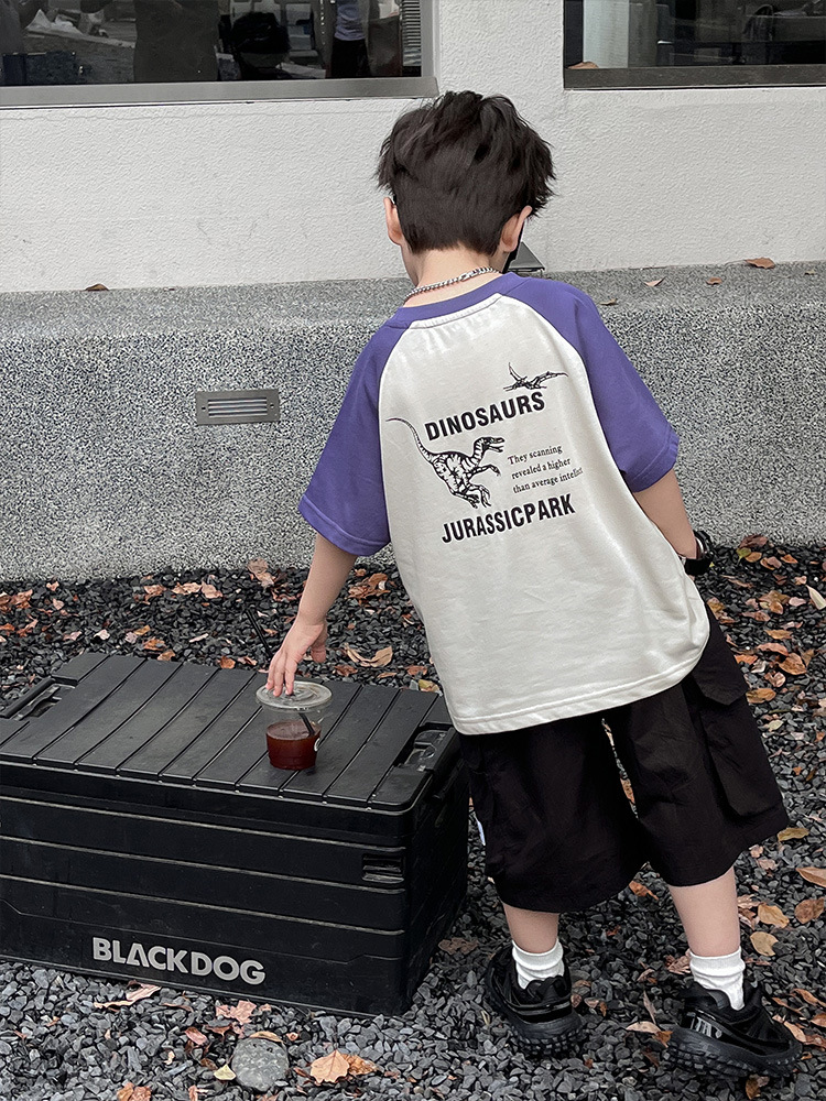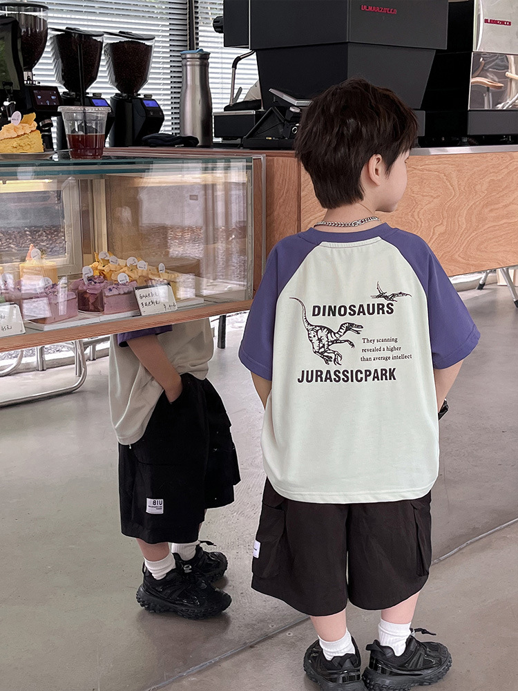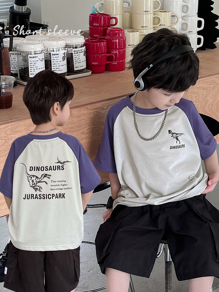 童酷儿童夏装新品湖州织里童装韩版恐龙印花插肩男童短袖T恤