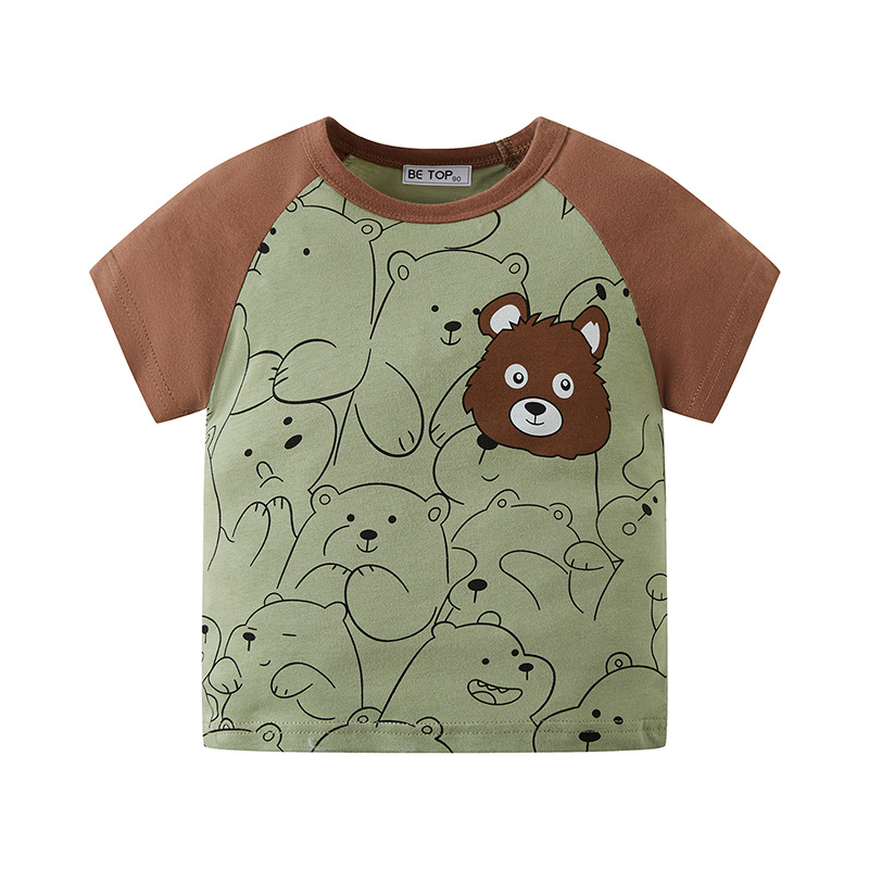 be top卡通童装满印小熊儿童短袖T恤圆领宝宝插袖上衣潮