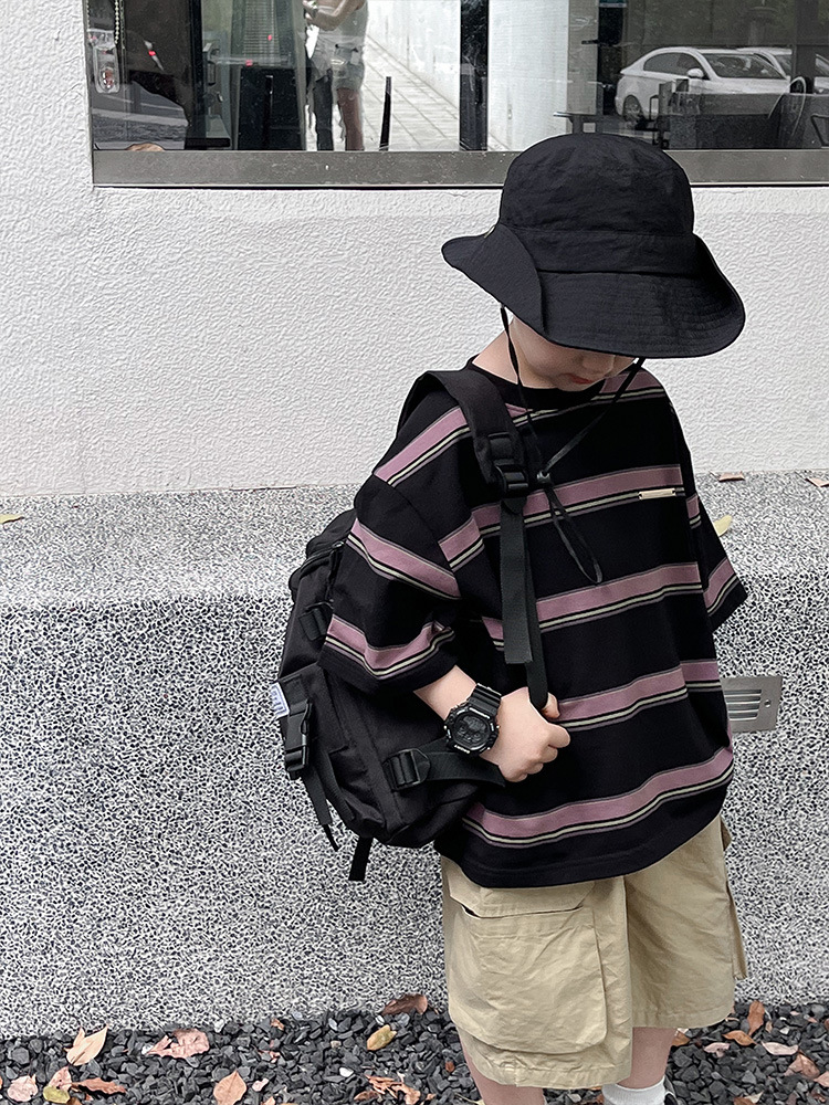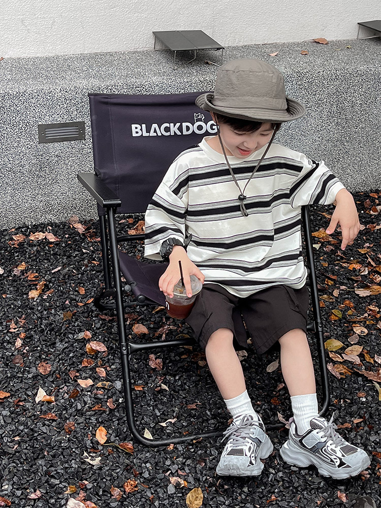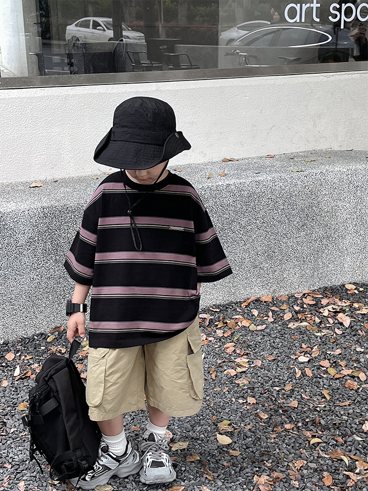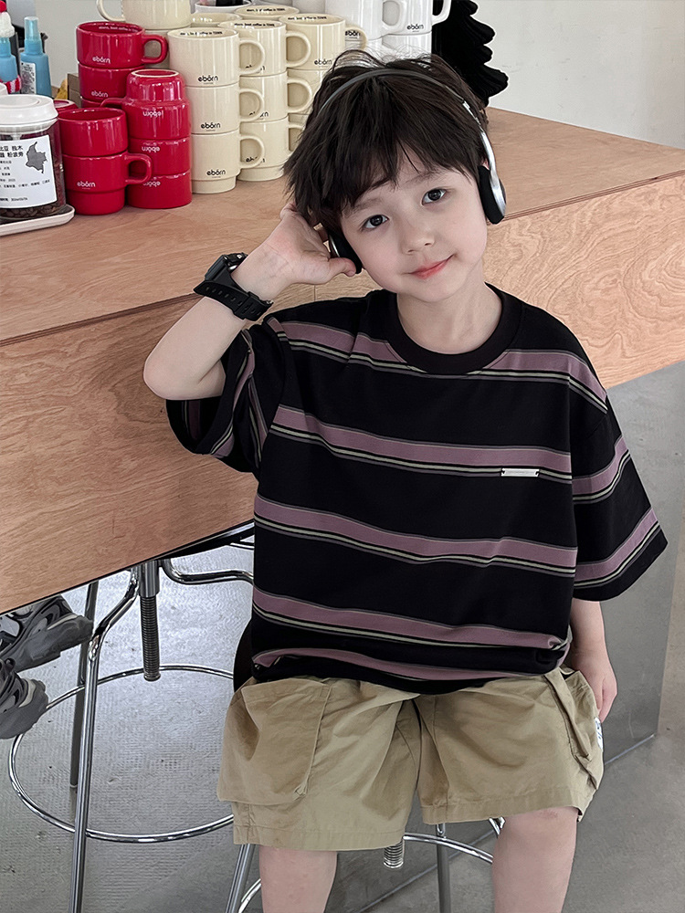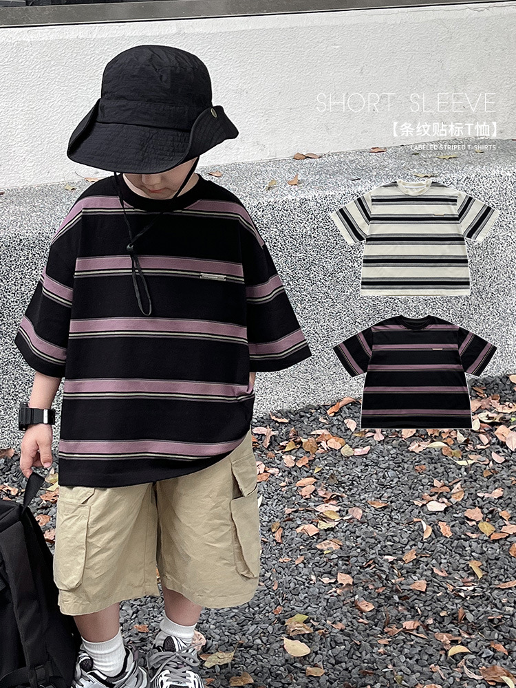 童酷男童夏装新品湖州织里童装韩版条纹贴标儿童短袖