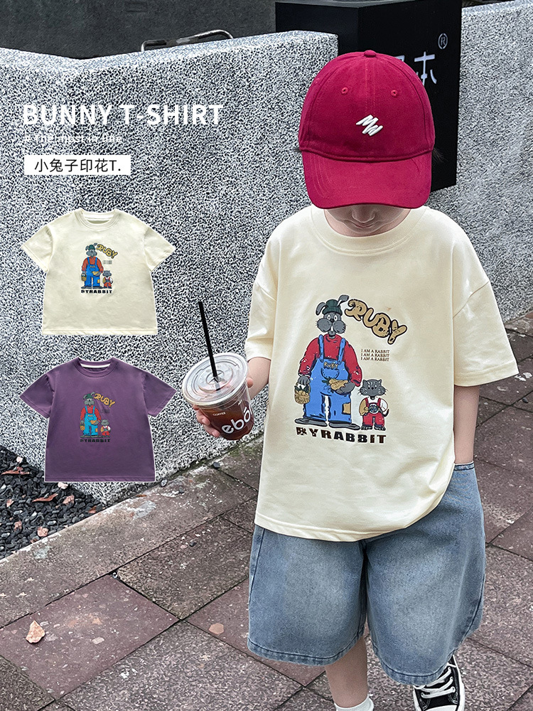童酷湖州织里童装儿童夏装新品可爱兔子印花男童短袖