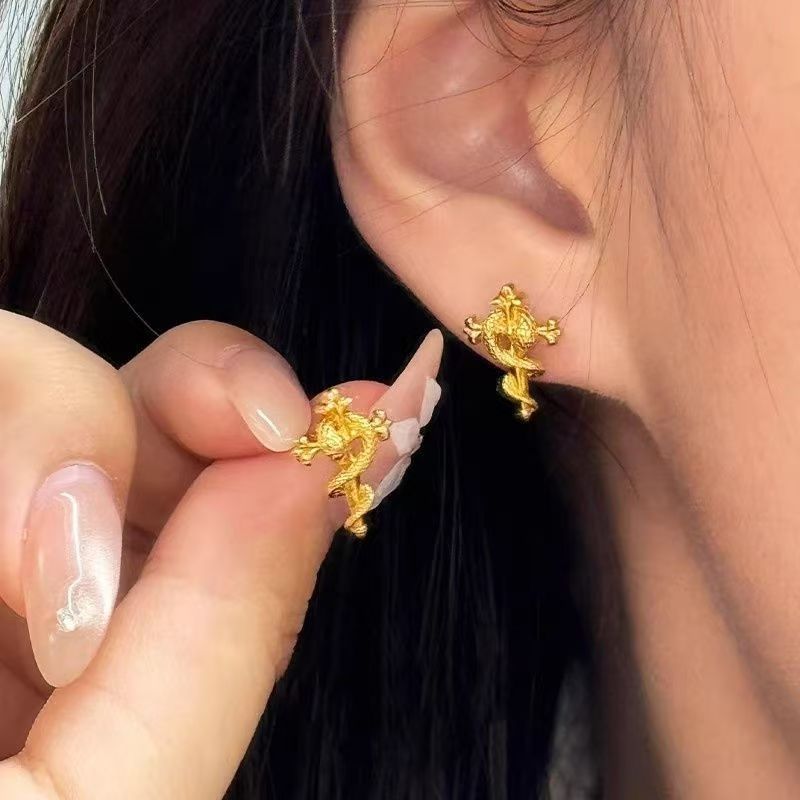 小红书爆款古法权杖小金蛇耳钉女vintage本命年生肖蛇配饰耳环女