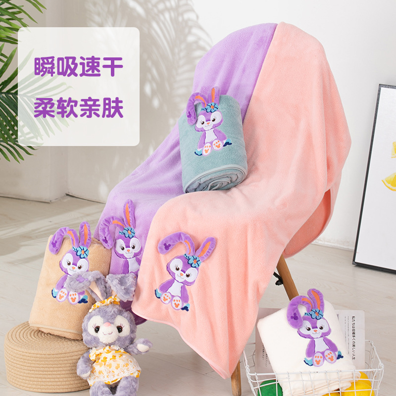 星星兔多功能浴巾毛巾两件套宝宝儿童浴袍卡通沙滩巾居家午休毯子