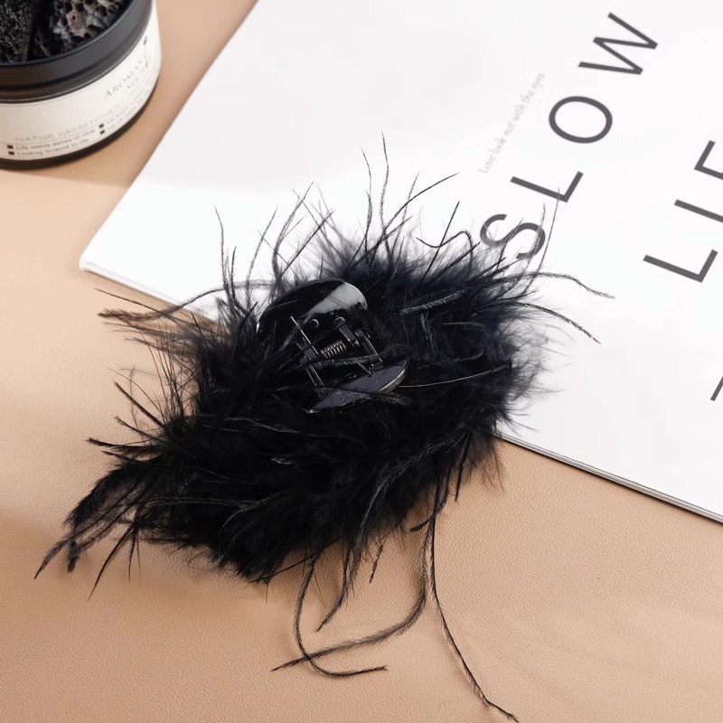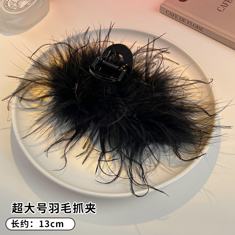 纯欲ins风鸵鸟羽毛发夹后脑勺盘发抓夹头饰鲨鱼夹鸡毛高级感发饰