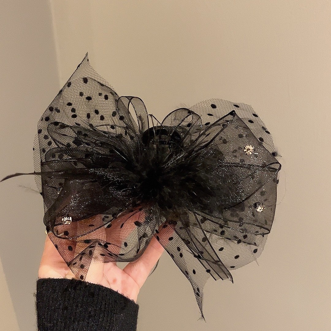 羽毛网纱蝴蝶结抓夹
