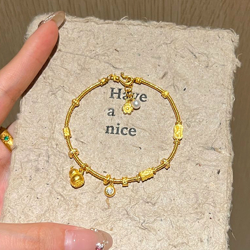 小红书爆款古法盘缠葫芦手链女编制复古流苏diy珍珠花朵手镯手环