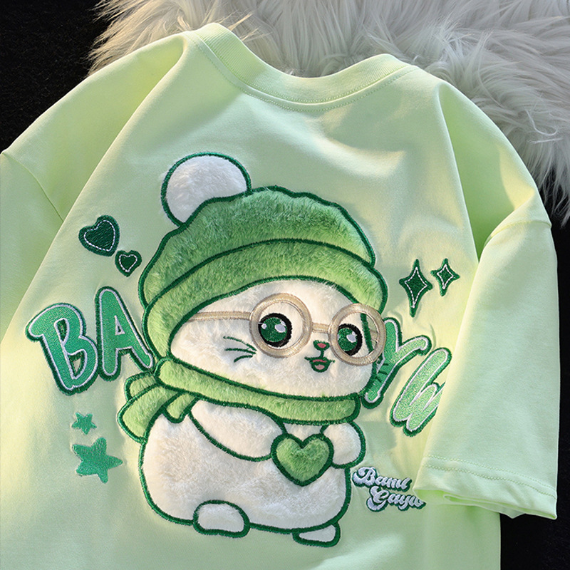 纯棉设计感小众短袖t恤女夏季大码宽松美式复古港风chic落肩上衣