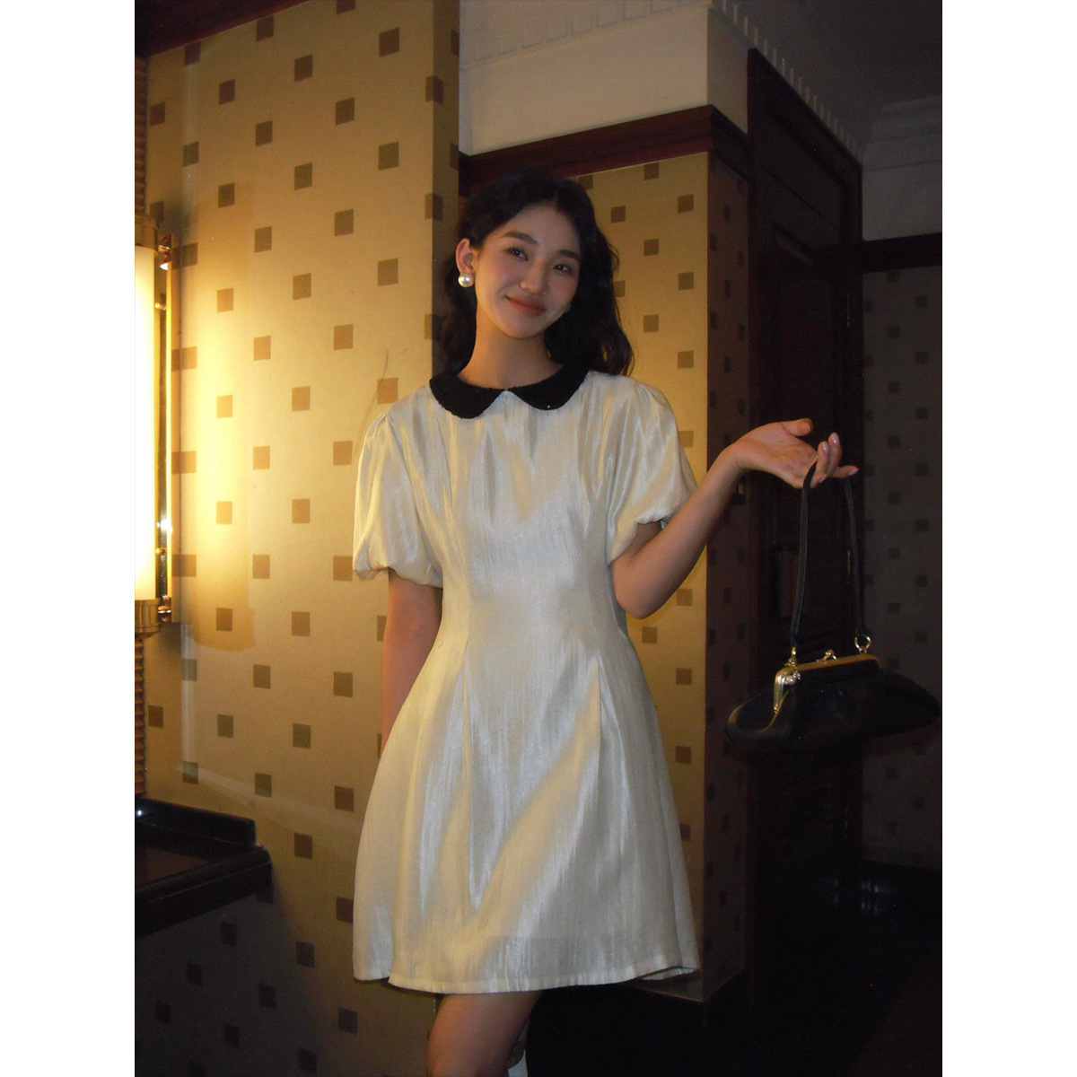 诠释美NEW OPEN夏法式娃娃领裙子女收腰气质黑色连衣裙81223