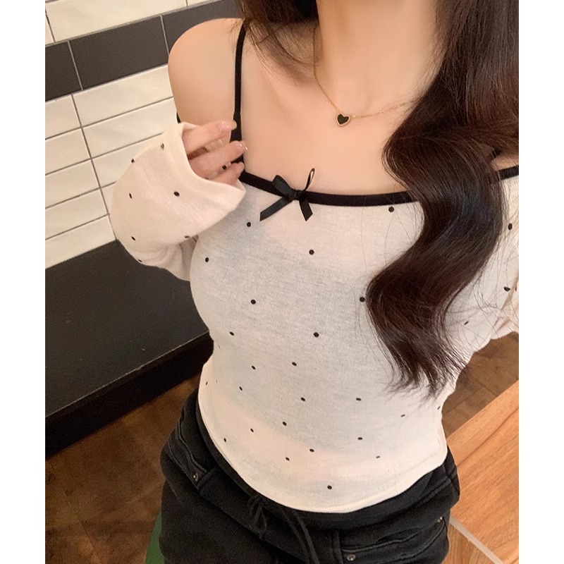 一字露肩纯欲修身长袖t恤女早春穿搭配吊带背心两件套打底衫上衣