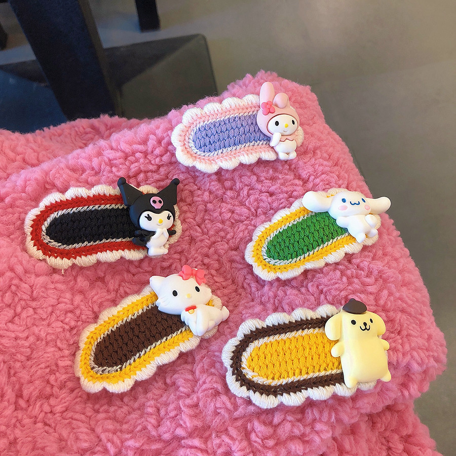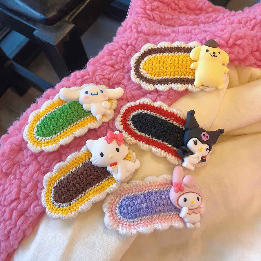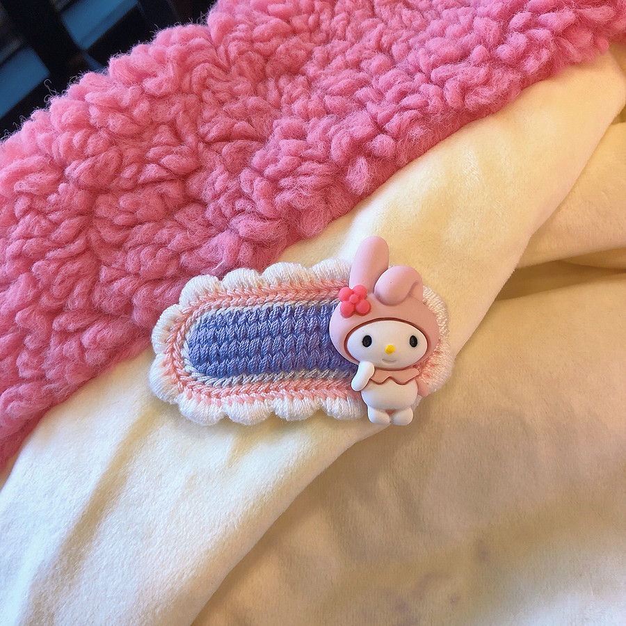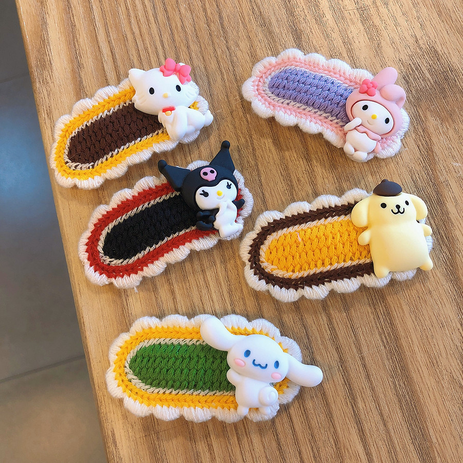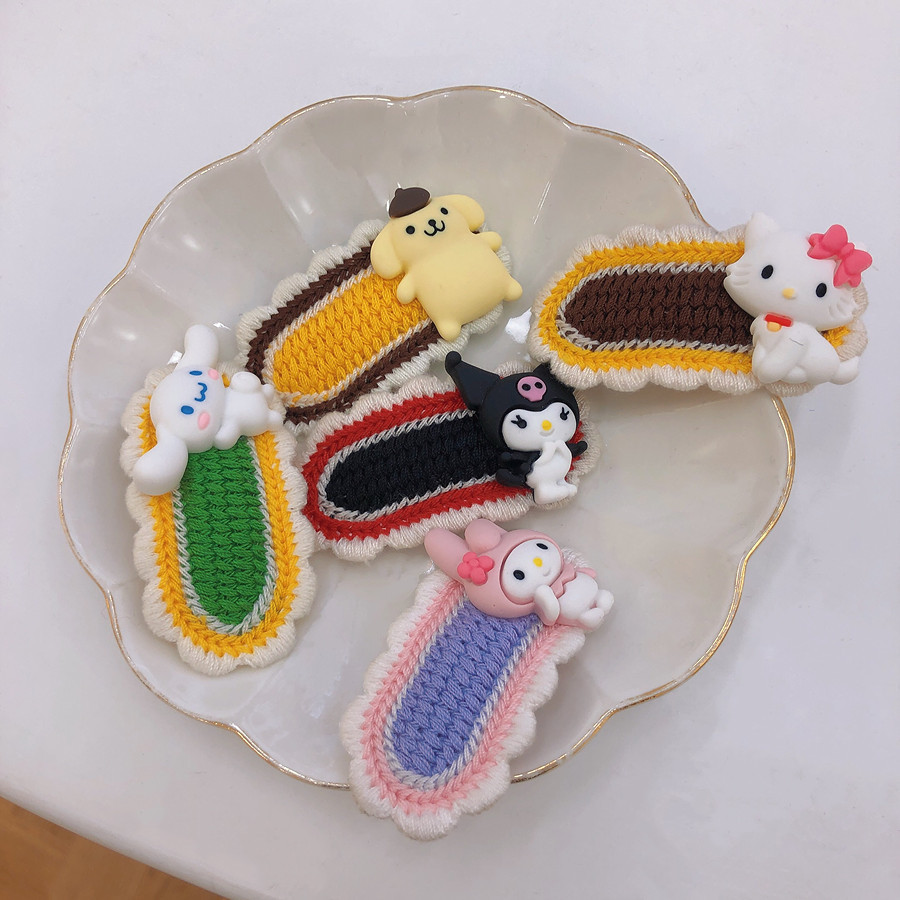 日系可爱三丽鸥发夹毛线针织刘海侧边夹甜美卡通bb夹手工编制发卡