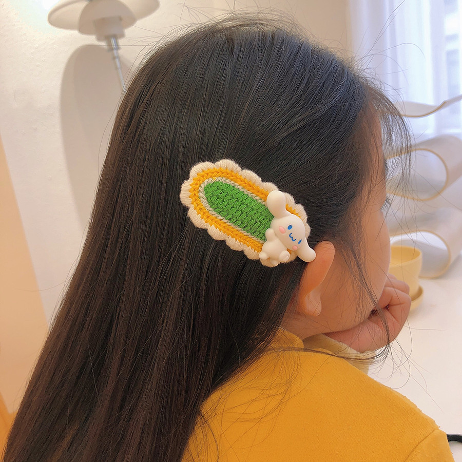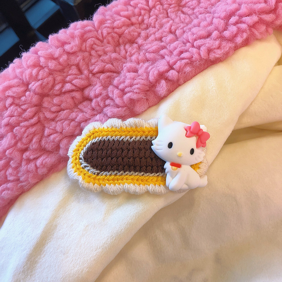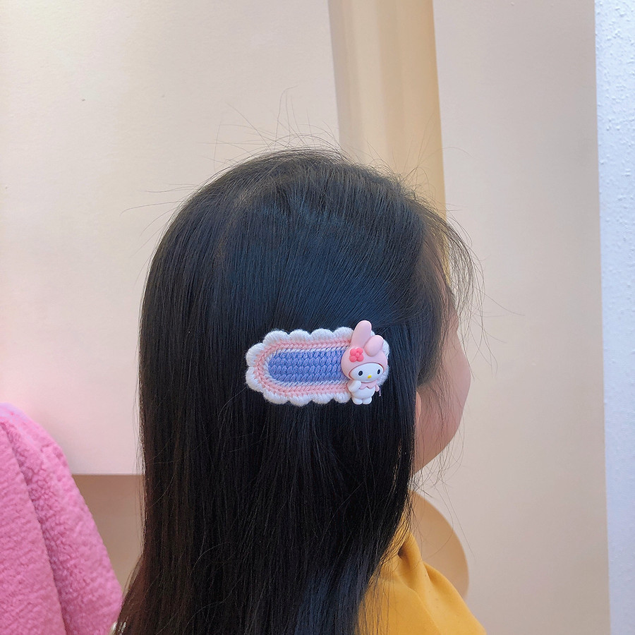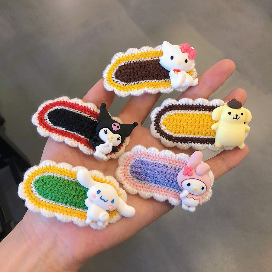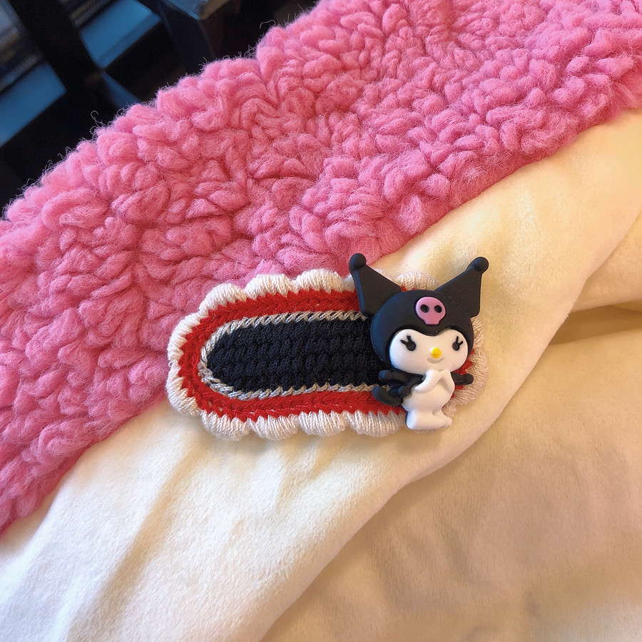日系可爱三丽鸥发夹毛线针织刘海侧边夹甜美卡通bb夹手工编制发卡