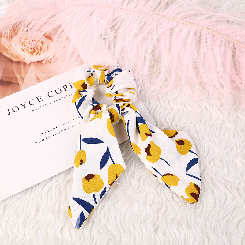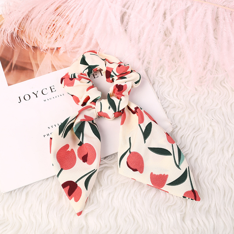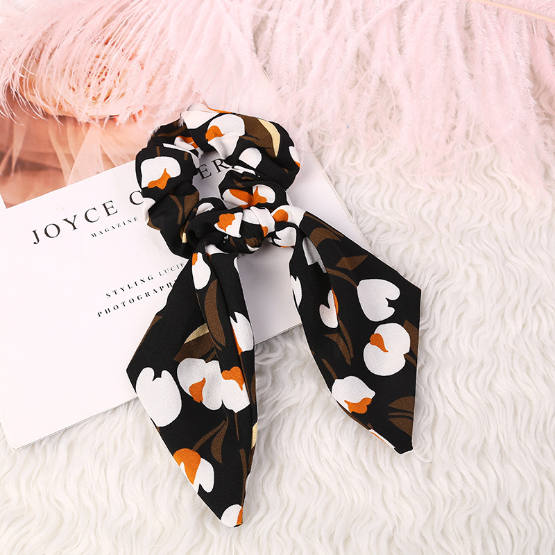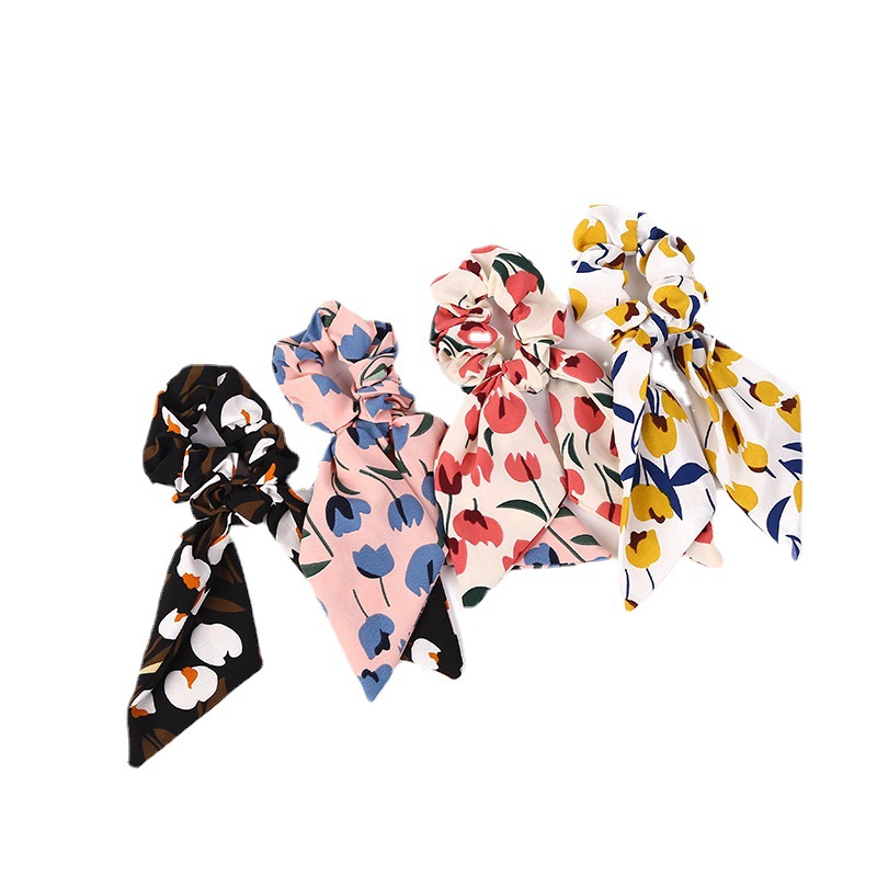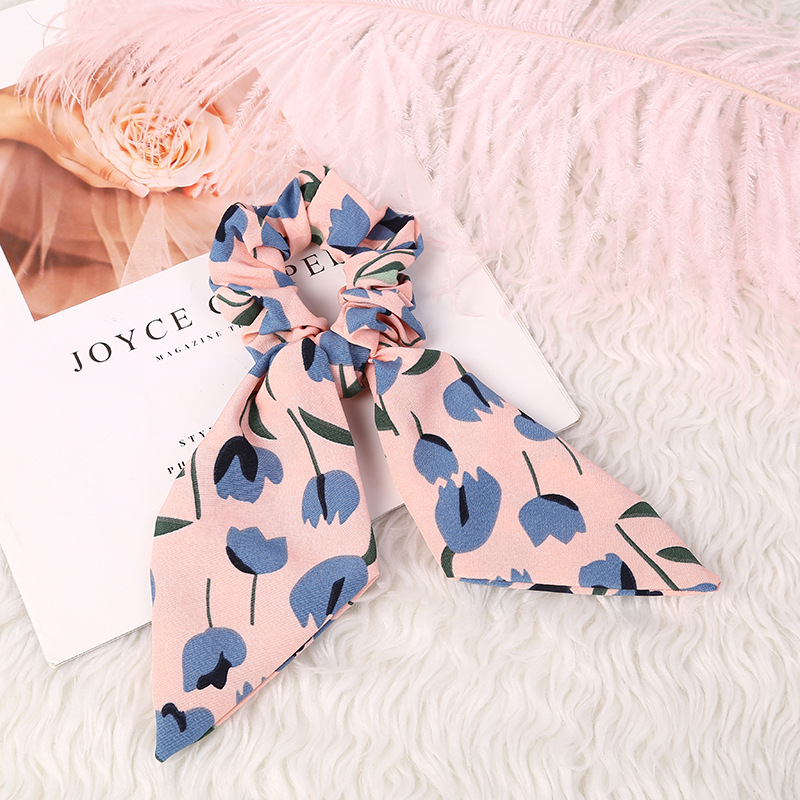 欧美ins蝴蝶结发饰 甜美飘带女大肠圈 日系浪漫印花雪纺发圈