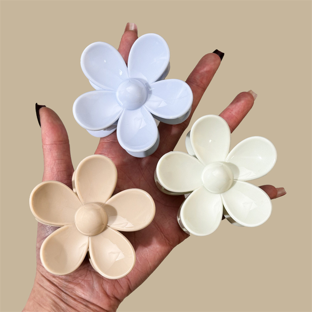 跨境亚马逊亮面花朵抓夹甜美五瓣花发夹后脑勺盘发马尾夹子女发饰