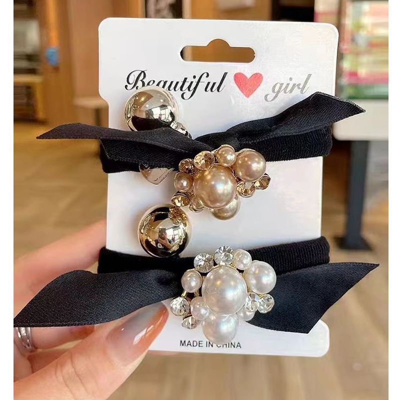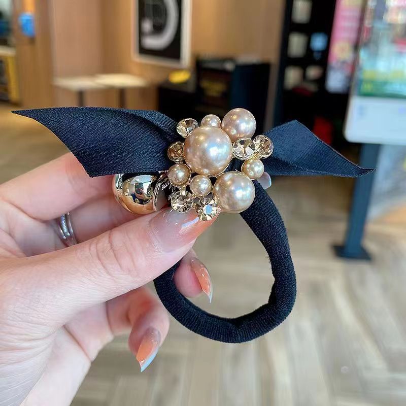 韩版珍珠蝴蝶结发圈甜美高颜值扎头发皮筋女网红轻奢马尾头绳发饰