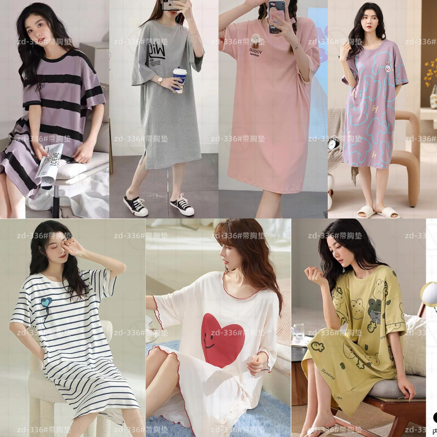 夏季短袖带胸垫睡裙女新款可外穿空调服薄款女士睡衣夏天家居服女