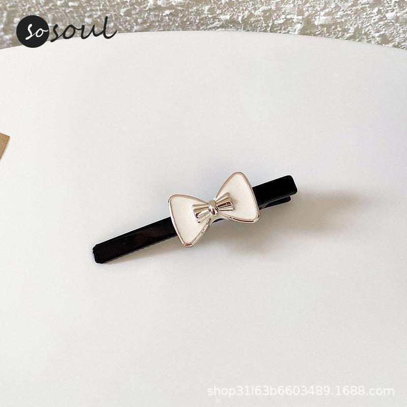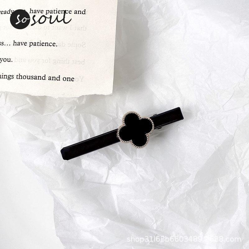 四叶草一字鸭嘴夹小香风侧边小夹子头饰黑白蝴蝶结前额碎发刘海夹