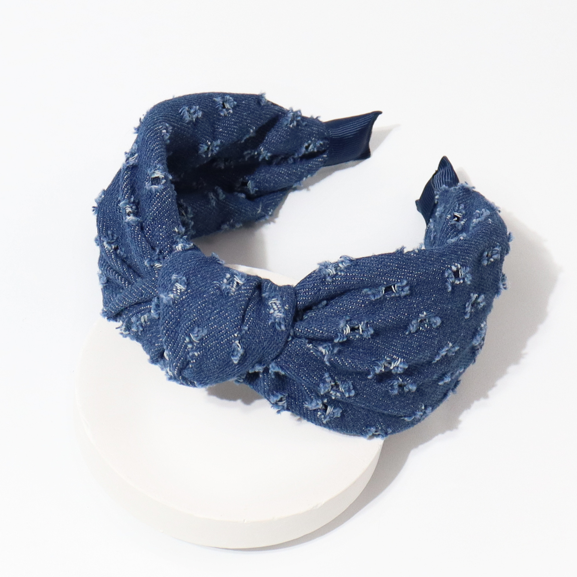 新款时尚破毛牛仔发箍布艺宽边头箍洗脸发窟手工打结发捆发饰套装