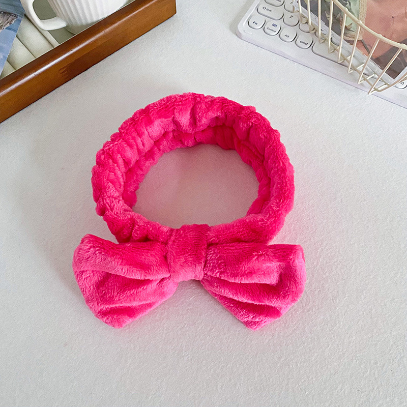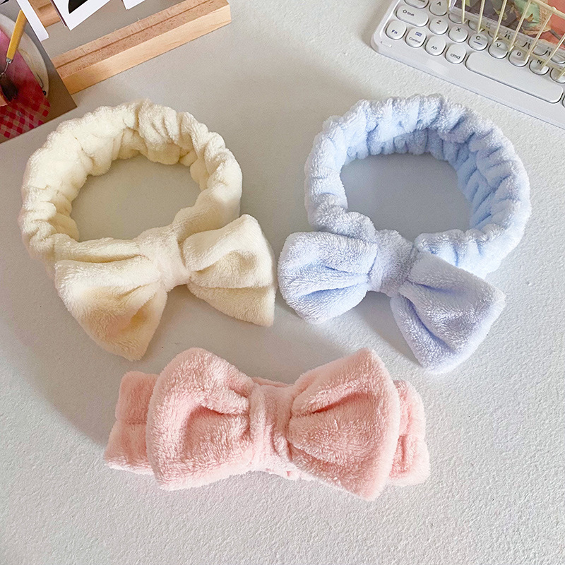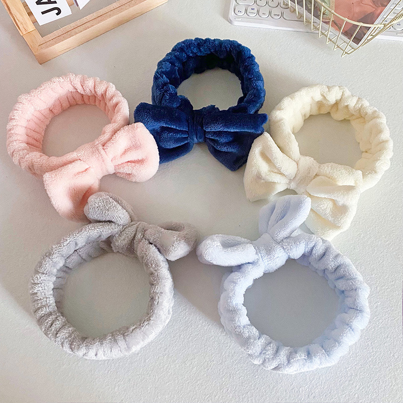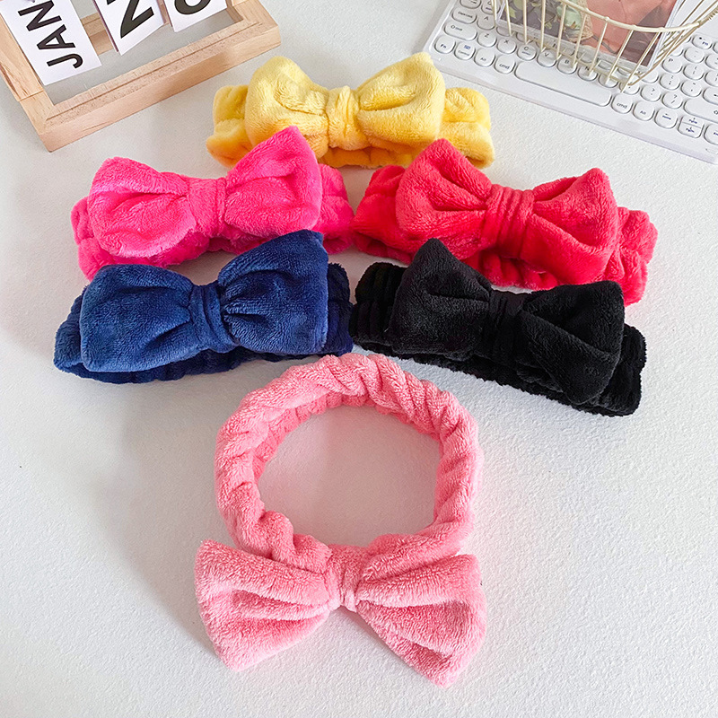 简约韩系纯色蝴蝶结束发带头饰女洗脸SPA可爱发饰法兰绒头巾发箍