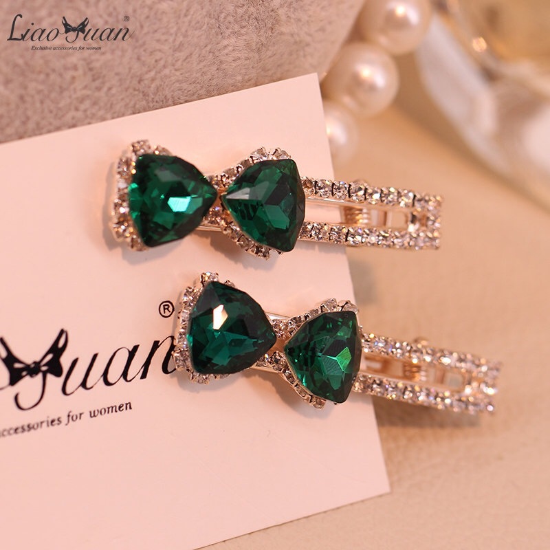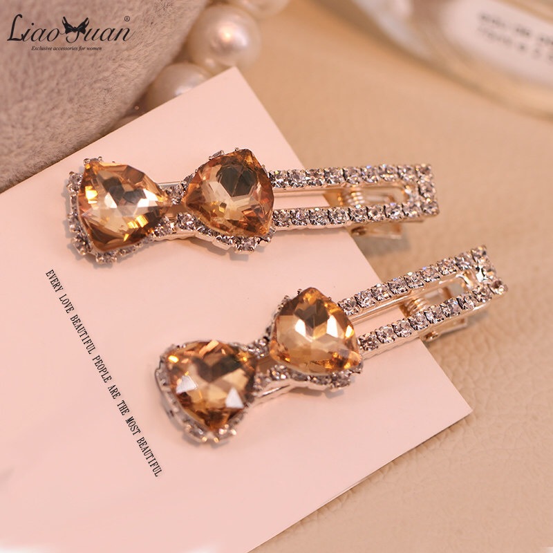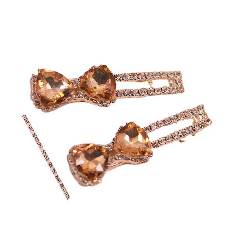 韩国水钻鸭嘴夹发卡蝴蝶结对夹头饰女士水晶边夹刘海一字夹