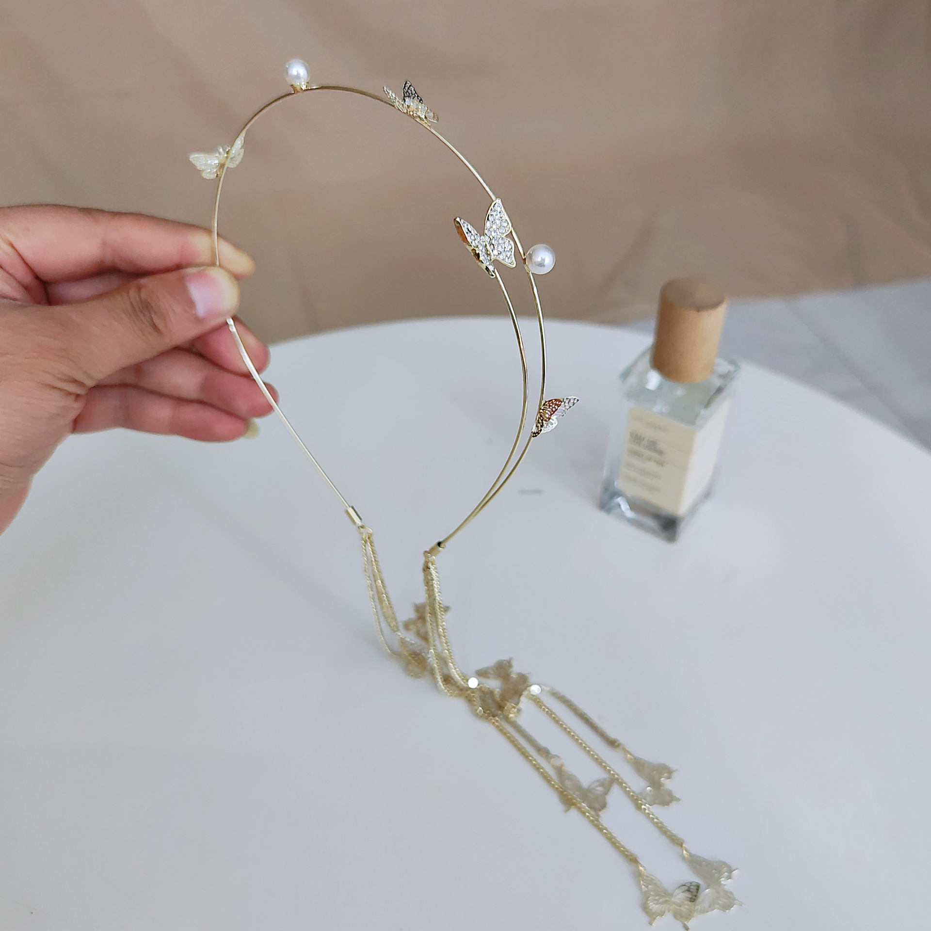 镶钻蝴蝶流苏发箍日系小众设计感甜美超仙头箍少女心甜酷气质发饰