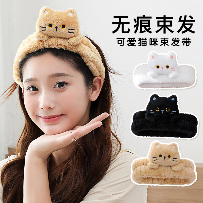 INS风猫咪发带洗脸头带女生卸妆发套法兰绒月子头巾防滑发箍束发