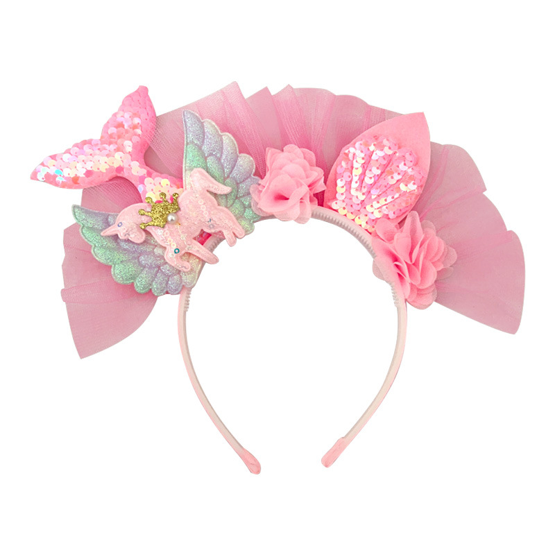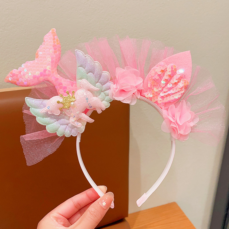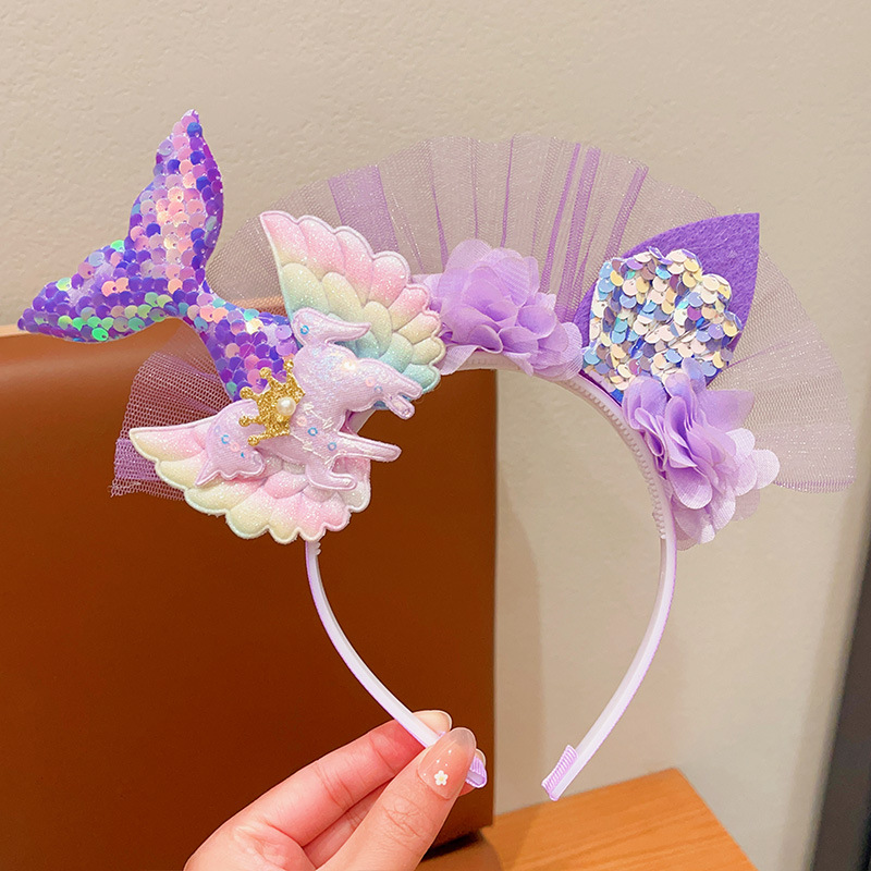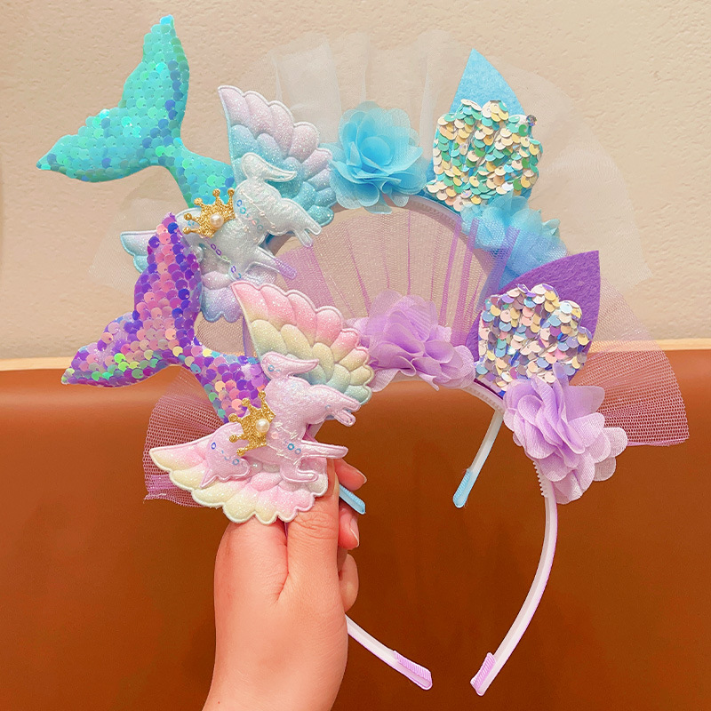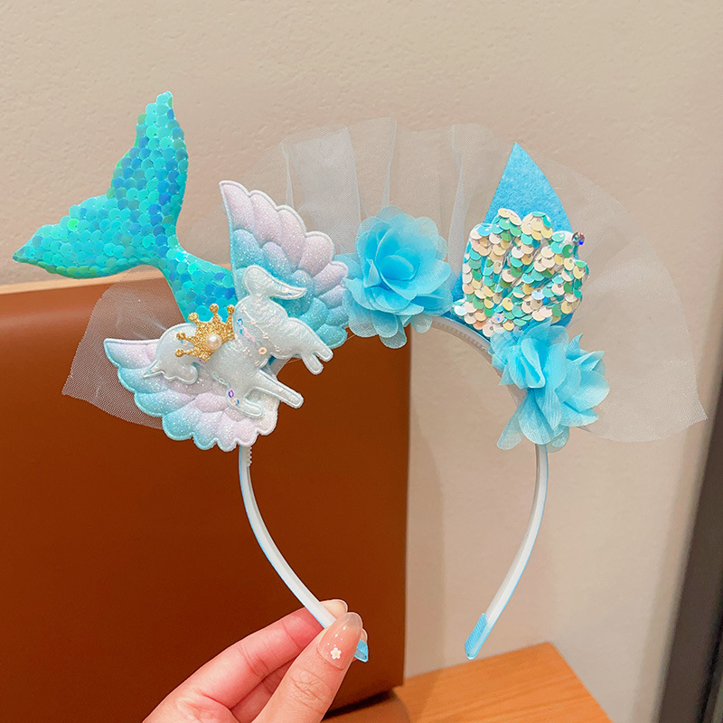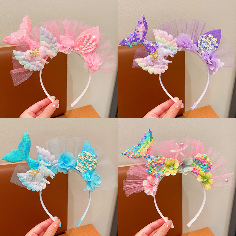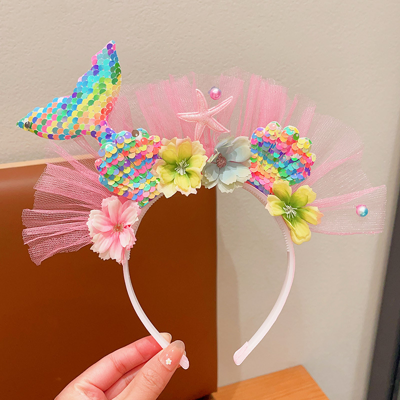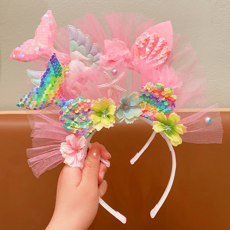 儿童头箍女童鱼尾贝壳发卡头饰女孩彩色亮片发箍公主花朵纱纱发饰