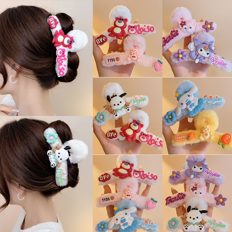 可爱毛绒绒大号草莓熊抓夹卡通发夹秋冬新款甜美少女心鲨鱼夹发饰